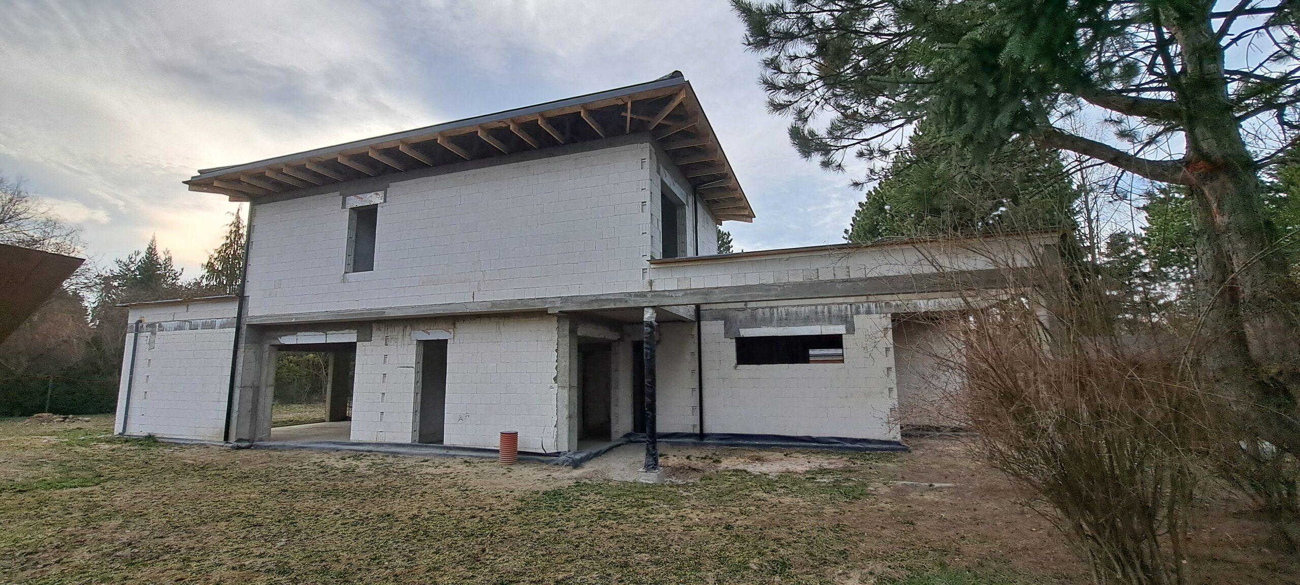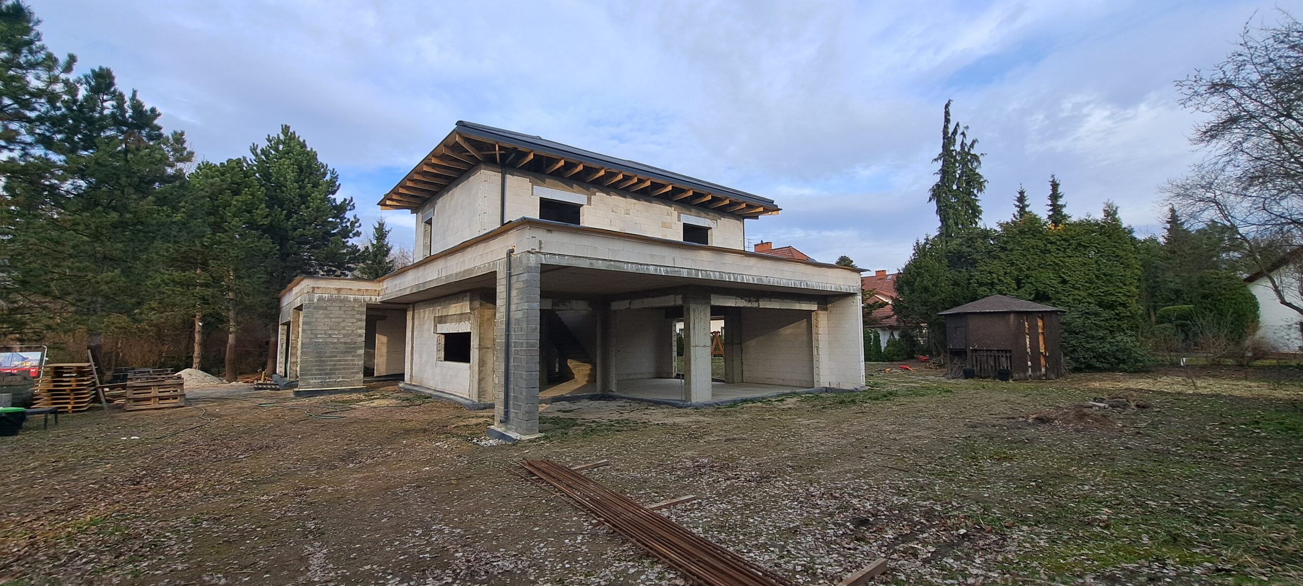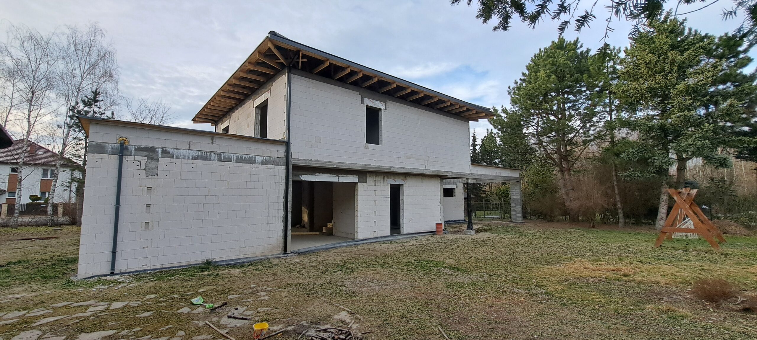 Nowoczesna elewacja –  dominują odcienie bieli i szarości, które doskonale współgrają z naturalnym otoczeniem oraz podkreślają minimalistyczną formę budynku.